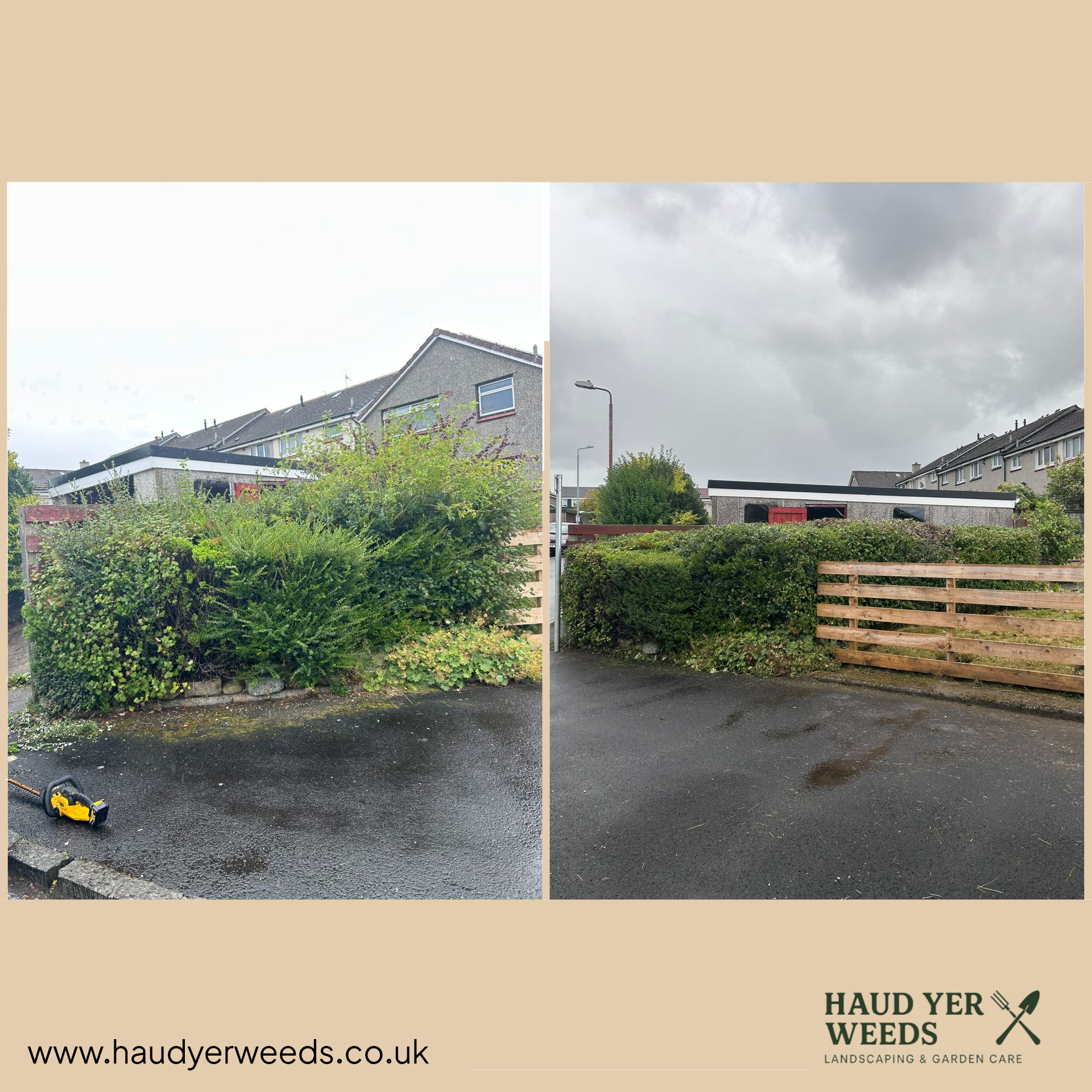 "Haud Yer Weeds did an excellent job cutting back the hedge, it was a hard job made to look effortless. He turned up when he said he would, charged what he said he would and left the place tidy too. 100% recommend."